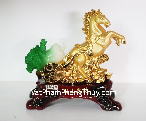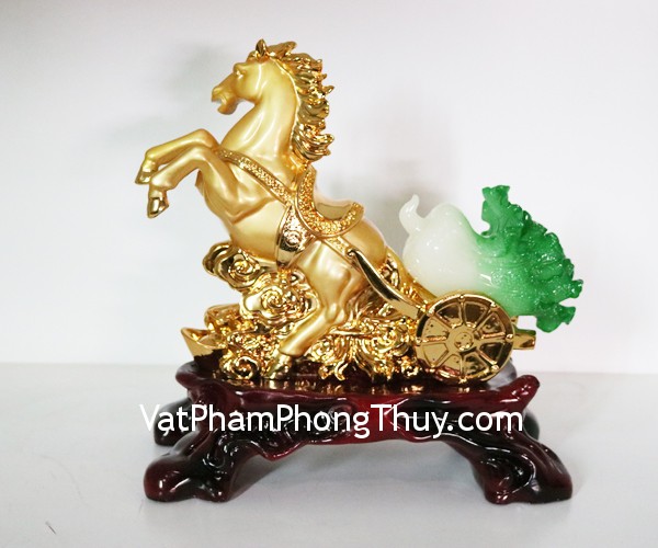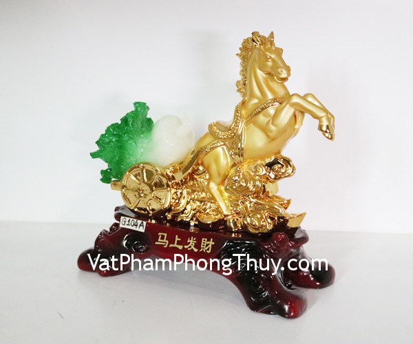 + Chất liệu và hoàn thiện: Tượng ngựa vàng kéo bắp cải size lớn, bột đá mạ vàng trên đế gỗ (tại Việt Nam)