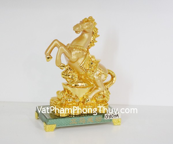 + Chất liệu và hoàn thiện: Tượng ngựa vàng trên kim nguyên bảo, bột đá mạ vàng trên đế thủy tinh (tại Việt Nam)