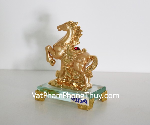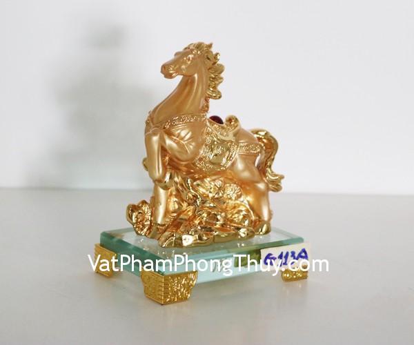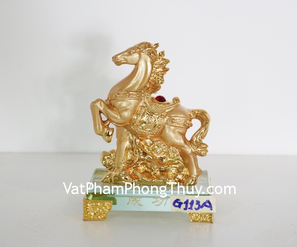 + Chất liệu và hoàn thiện: Tượng ngựa trên mây, đế thủy tinh, bột đá mạ vàng cao cấp (tại Việt Nam)