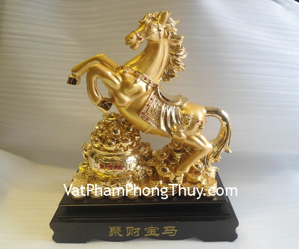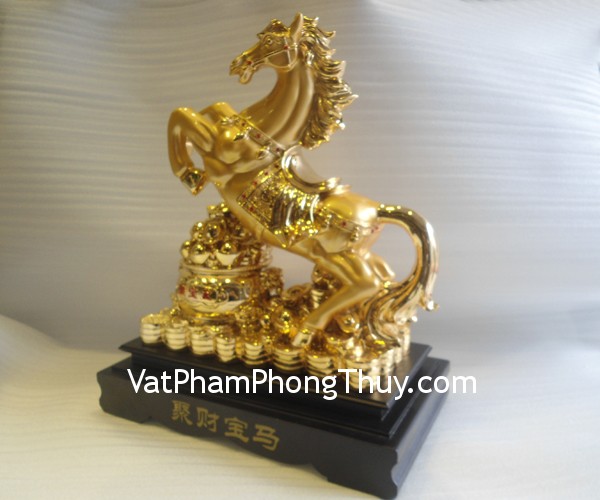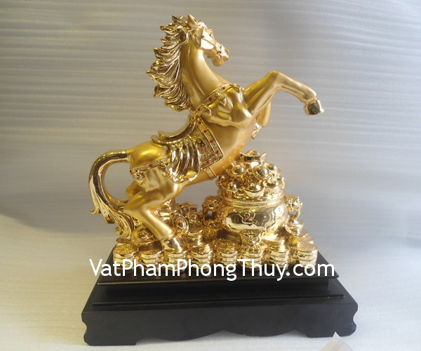 + Chất liệu và hoàn thiện: Tượng ngựa bằng bột đá mạ vàng non (tại Việt Nam).