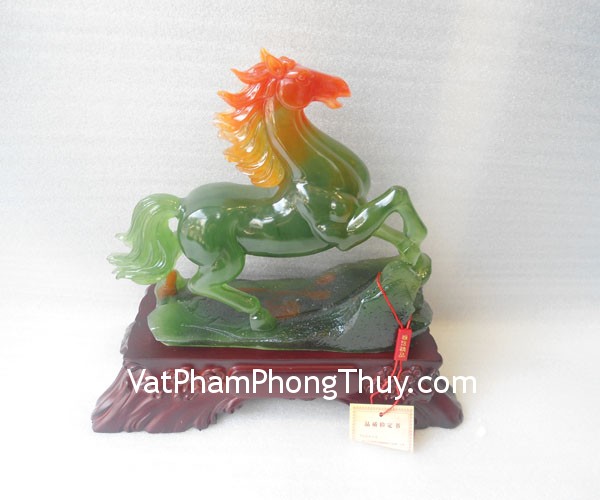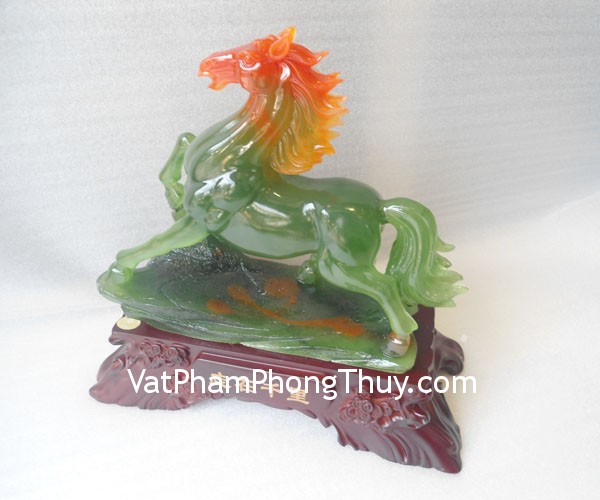 + Chất liệu và hoàn thiện: Tượng ngựa xanh trên đế gỗ, bột đá màu (tại Việt Nam).