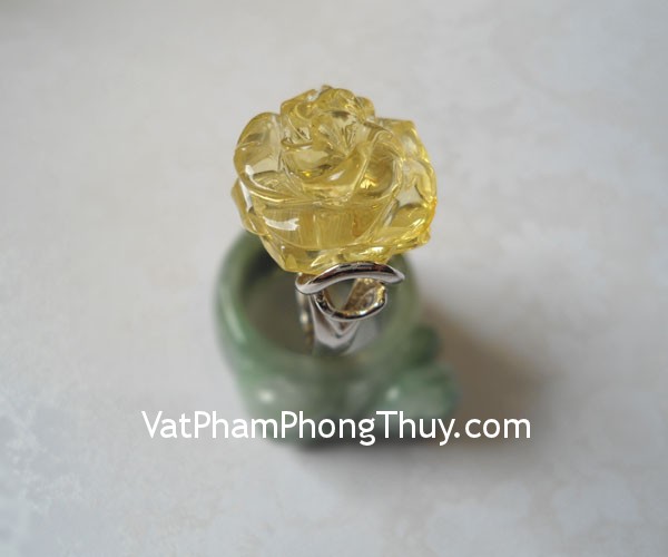 + Chất liệu và hoàn thiện: Nhẫn hoa mẫu đơn hổ phách bọc bạc (tại Việt Nam).