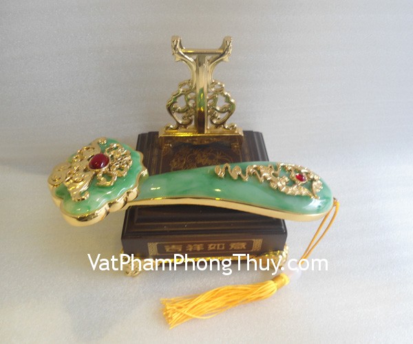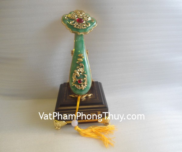 + Chất liệu và hoàn thiện : Gậy như ý xanh bằng hợp kim mạ vàng non (tại Việt Nam).