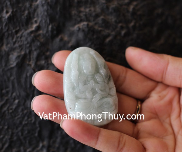 + Chất liệu và hoàn thiện: Phật bản mệnh ngọc Phỉ Thúy Myanmar tuổi Tý, vân xanh nhạt cỡ lớn – Phật Thiên Thủ Thiên Nhãn (tại Việt Nam).
