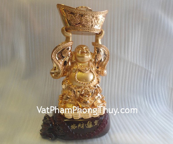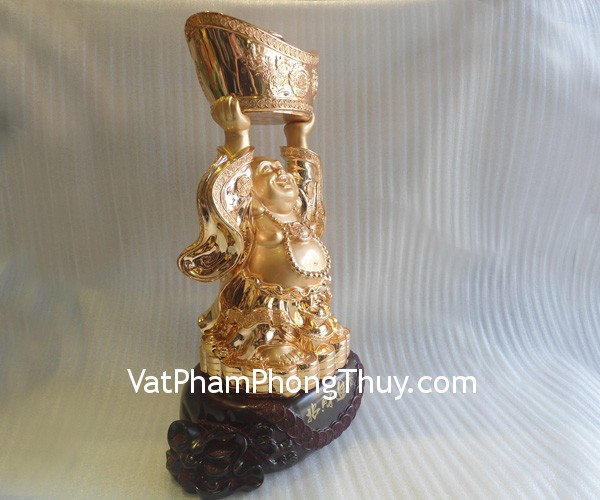+ Ý nghĩa: Phật di lặc đứng đỡ đỉnh vàng – chiêu tài tấn bảomang phước nhập gia, gia đình vui vẻ,hạnh phúc, may mắn về tài lộc.