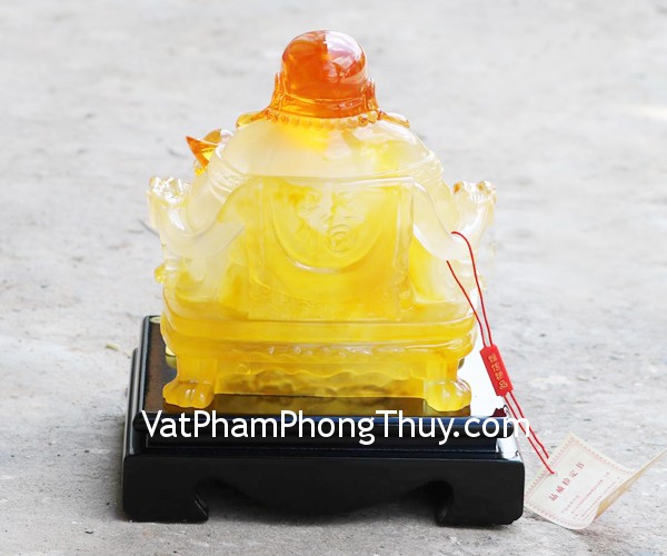+ Chất liệu và hoàn thiện: Phật di lạc màu lưu ly ngồi trên ghế hình rồng, hàng bột đá màu cao cấp (tại Việt Nam).