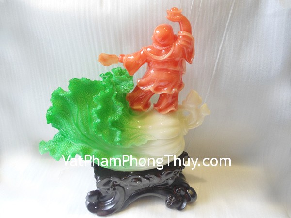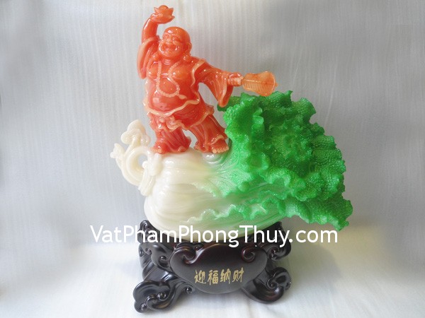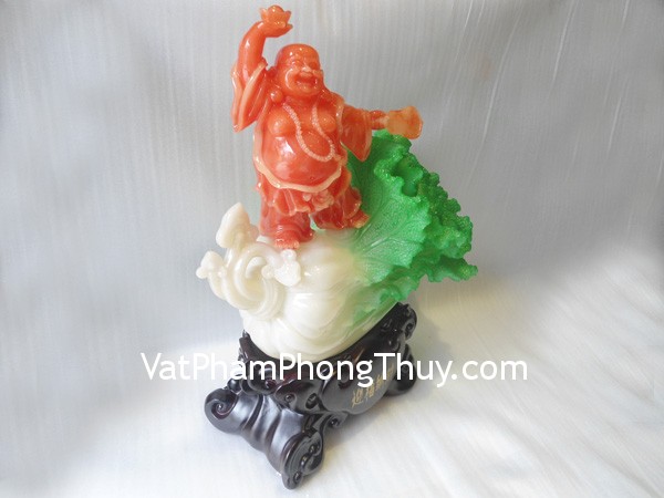 + Chất liệu và hoàn thiện: Phật Di Lặc nghinh phước nạp tài đứng trên bắp cải lớn, bột đá màu ( Hồng Kông).