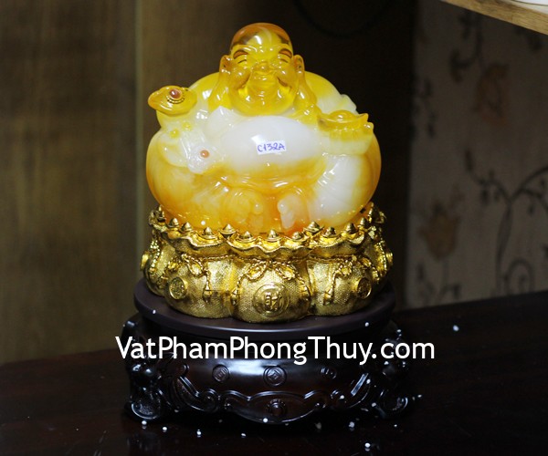 Phật di lạc vàng cam đế xoay C132A