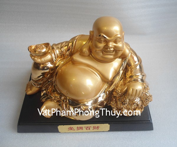 + Chất liệu và hoàn thiện: Phật di lặc bằng bột đá mạ vàng đúc khuôn (tại Việt Nam).