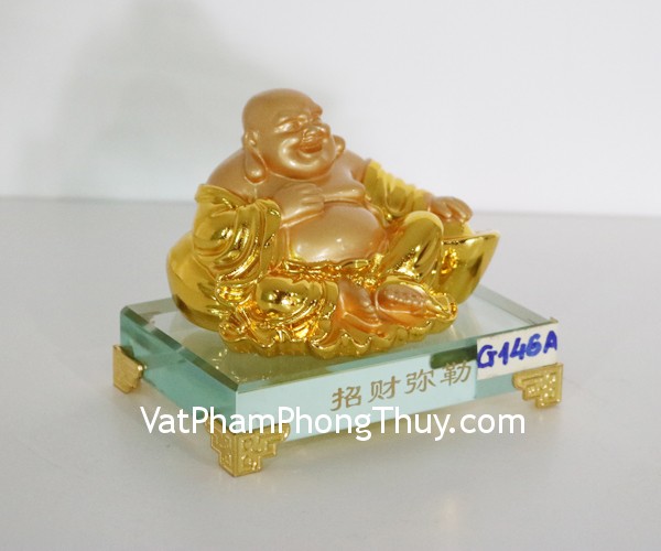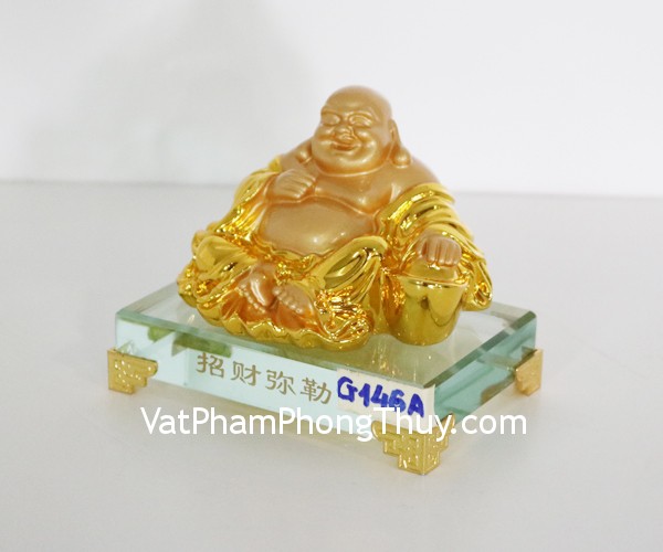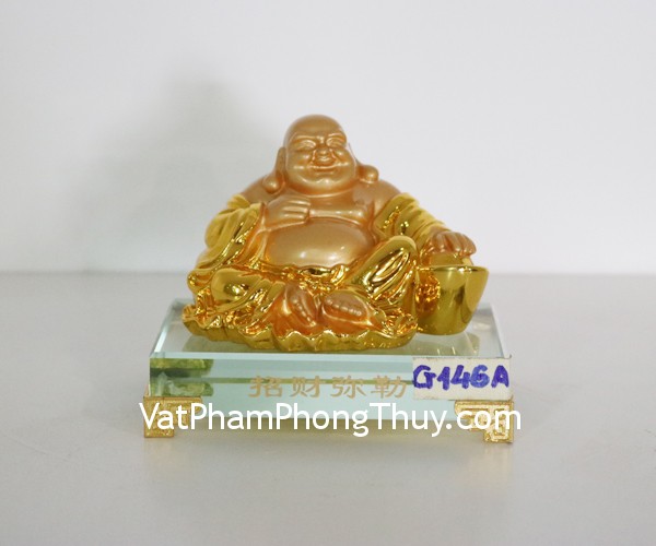 + Chất liệu và hoàn thiện: Phật di lạc vàng vịn nén nguyên bảo, đế thủy tinh, hàng bột đá mạ vàng cao cấp (tại Việt Nam).