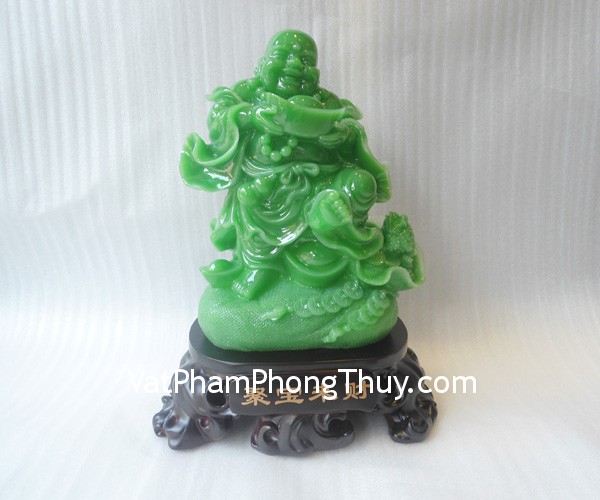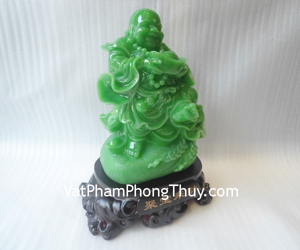 + Ý nghĩa: Phật di lặc xanh đứng trên túi tiền – tụ bảo lai tài – biểu tượng của sự vui vẻ, an lạc như ý, ban phước nạp tài.