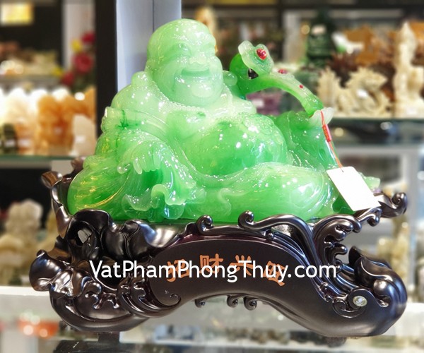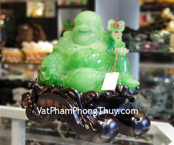 + Chất liệu và hoàn thiện: Phật di lạc xanh ngọc tay cầm như ý và túi tiền may mắn, hàng bột đá màu cao cấp (tại Việt Nam).
