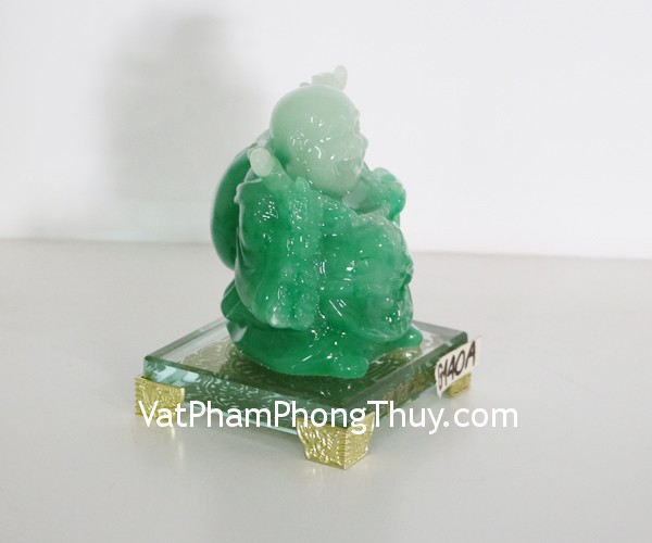 + Chất liệu và hoàn thiện: Phật di lạc xanh quảy vàng trên đế thủy tinh, hàng bột đá mạ vàng cao cấp (tại Việt Nam).