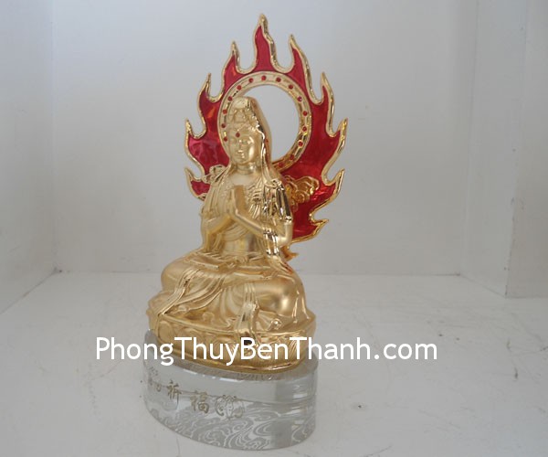 + Chất liệu và hoàn thiện: Phật quan âm bột đá mạ vàng non (tại Việt Nam).