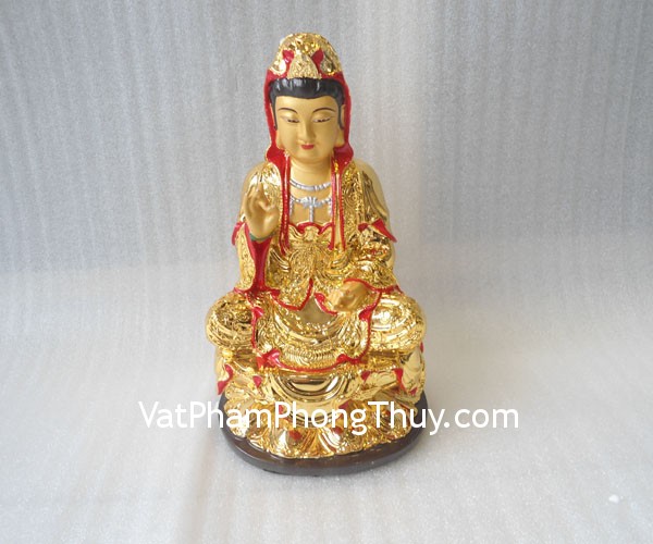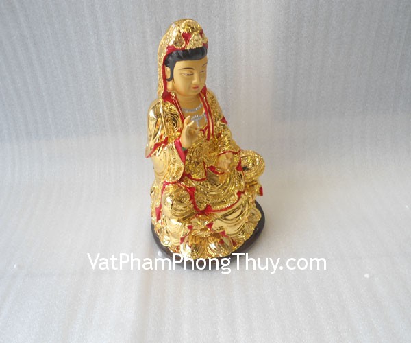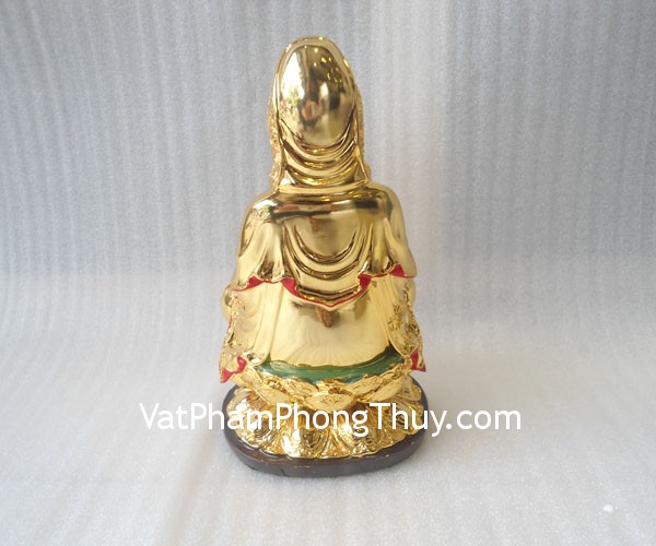 + Chất liệu và hoàn thiện: Phật Quan Âm ngồi bình an, hợp kim mạ vàng non (tại Việt Nam).