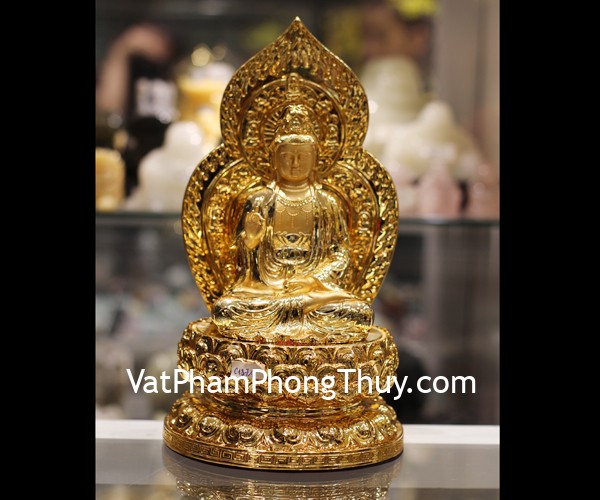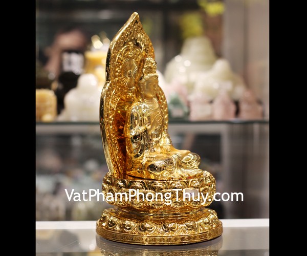+ Chất liệu và hoàn thiện: Phật quan âm vàng ngồi trên đài sen, hàng bột đá mạ vàng cao cấp (tại Việt Nam).