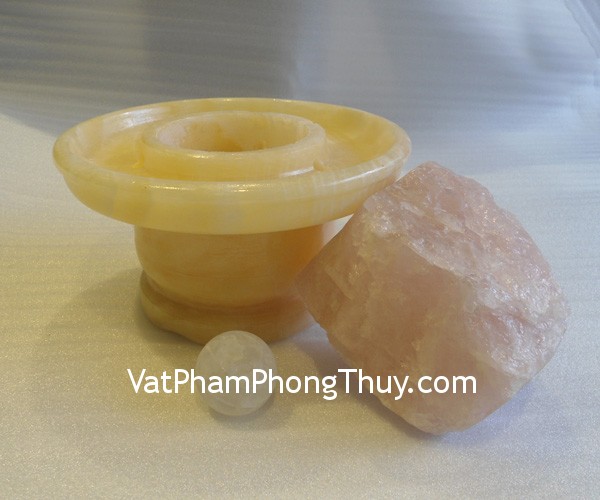 + Chất liệu và hoàn thiện: Phong thủy luân đá ngọc Hoàng Long (tại Việt Nam) và thạch anh hồng (tại Việt Nam) .