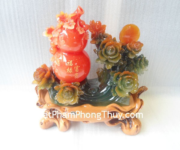 + Chất liệu và hoàn thiện: Mẫu đơn xanh ôm hồ lô đỏ, bột đá màu (tại Việt Nam).