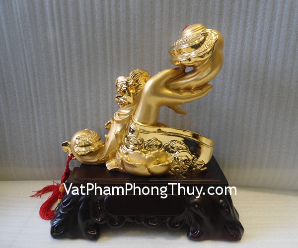 + Chất liệu và hoàn thiện : Bàn tay trên hoa mẫu đơn, nâng gậy như ý, bằng bột đá mạ vàng (tại Việt Nam).