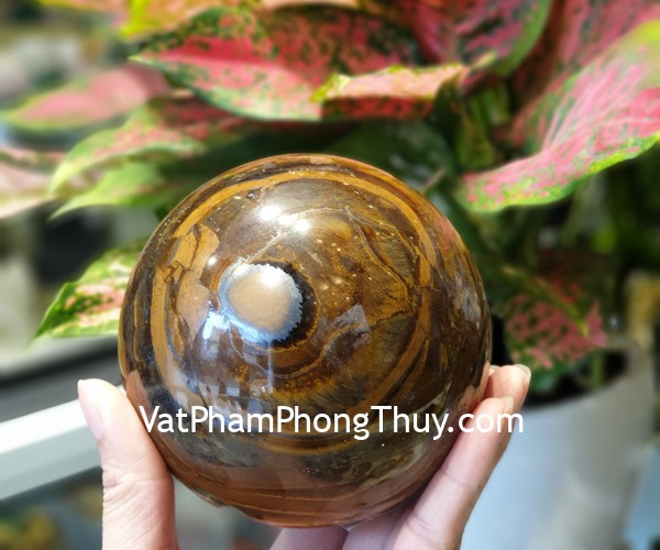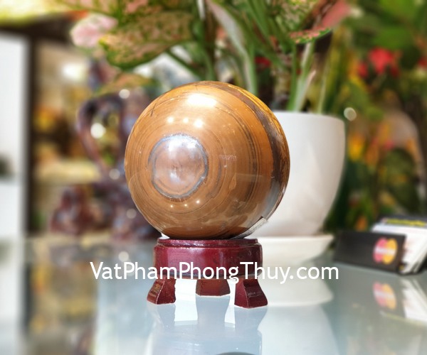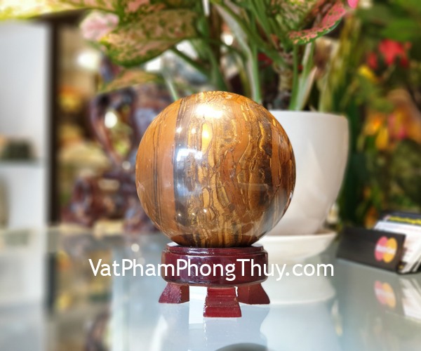 + Chất liệu và hoàn thiện: Quả cầu đá mắt mèo vân gỗ (tại Việt Nam).