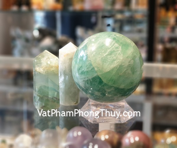 + Chất liệu và hoàn thiện: Quả cầu đá dạ quang vân xanh (tại Việt Nam).