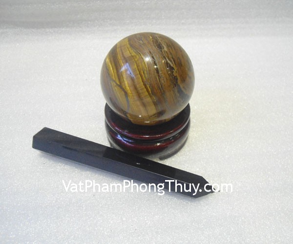 + Chất liệu và hoàn thiện: Quả cầu đá mắt mèo vân gỗ (tại Việt Nam).
