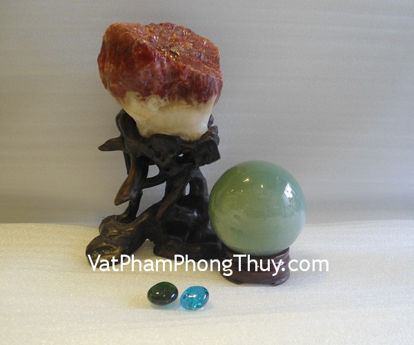 + Chất liệu và hoàn thiện: Qủa cầu đá ngọc Đông Linh (thạch anh xanh),India, Nam Mỹ.