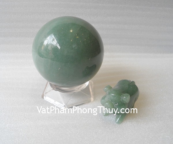 + Chất liệu và hoàn thiện: Qủa cầu đá ngọc Đông Linh (thạch anh xanh),India, Nam Mỹ.