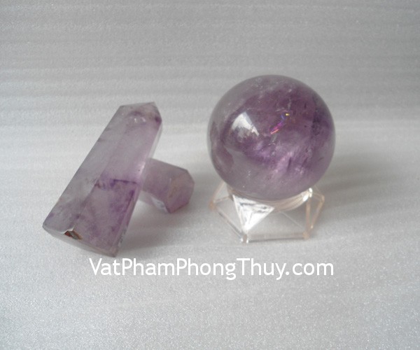 + Chất liệu và hoàn thiện: Qủa cầu đá thạch anh tím (tại Việt Nam).