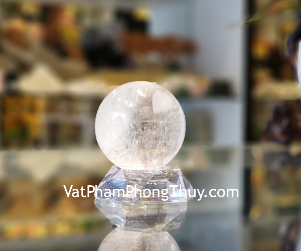 + Chất liệu và hoàn thiện: Qủa cầu đá thạch anh trắng tinh thể (tại Việt Nam).