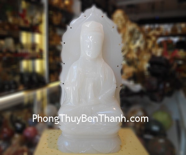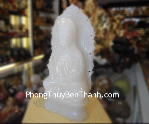 + Chất liệu và hoàn thiện: Tượng phật quan âm bằng ngọc trắng (Bạch Ngọc), Hồng Kông. + Kích thước (dài x rộng x cao): 14cm x 5cm x 28cm + Khối lượng: 3kg + Ý nghĩa: mang phước nhập gia, hữu cầu tất ứng. + Cách sử dụng: thờ cúng