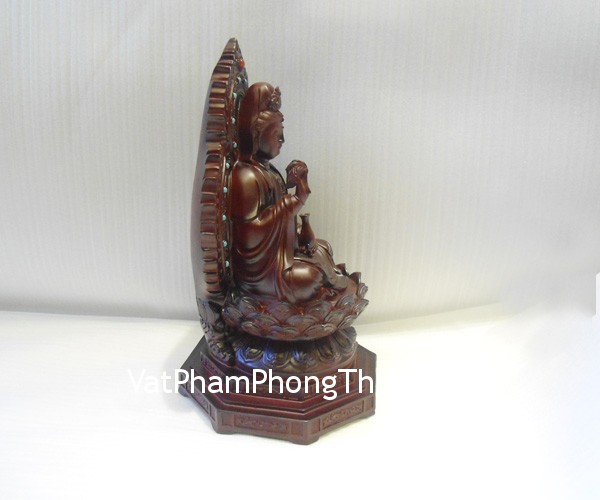 + Chất liệu và hoàn thiện: Tượng phật quan âm ngồi thiền, bột đá giả gỗ (tại Việt Nam).