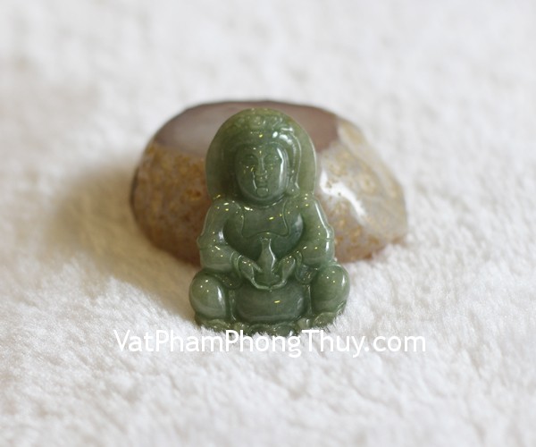 + Chất liệu và hoàn thiện: Phật quan âm ngọc Myanmar hay ngọc Phỉ Thúy, vân xanh đậm (Việt Nam).