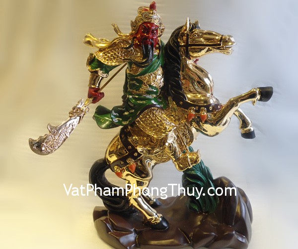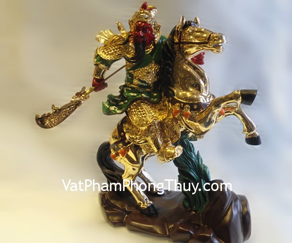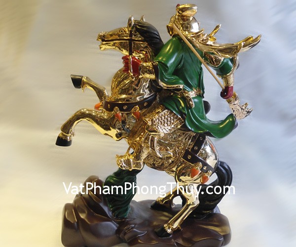 + Chất liệu và hoàn thiện: Tượng Quan Công cưỡi ngựa, bột đá mạ vàng non (tại Việt Nam)