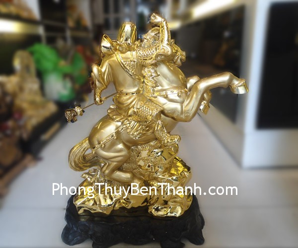 + Chất liệu và hoàn thiện: Quan công cưỡi ngựa bằng bột đá mạ vàng (tại Việt Nam).