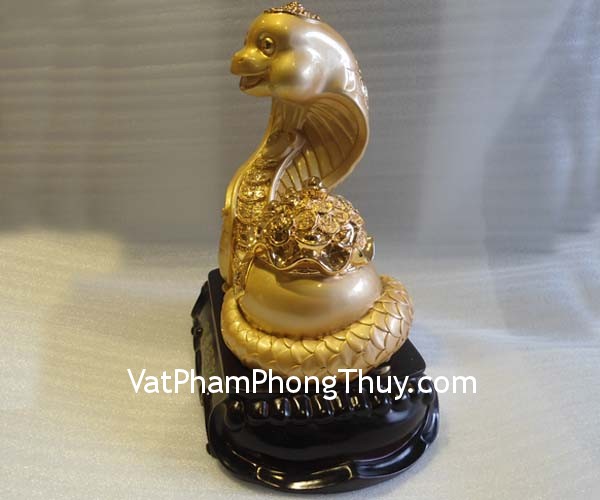 + Chất liệu và hoàn thiện: Tượng rắn (tuổi Tỵ) ôm bồn tụ bảo, bột đá mạ vàng non (tại Việt Nam).