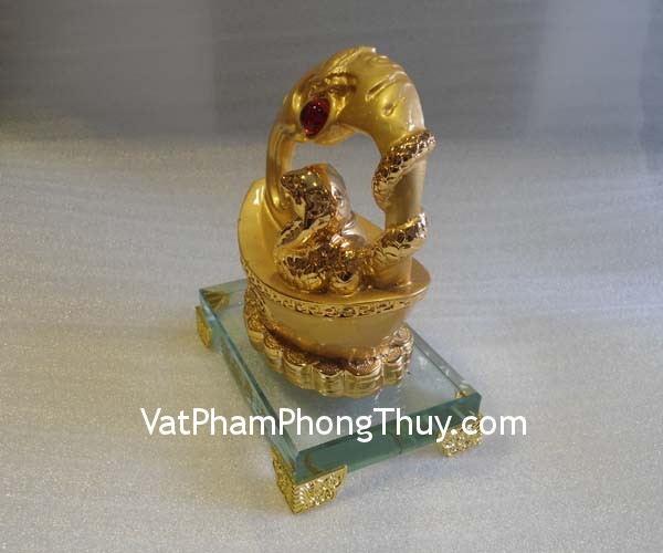 + Chất liệu và hoàn thiện: Tượng rắn (tuổi Tỵ) trên đỉnh vàng bằng bột đá mạ vàng non (tại Việt Nam).
