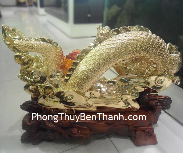 + Chất liệu và hoàn thiện: Rồng bột đá mạ vàng non (tại Việt Nam).