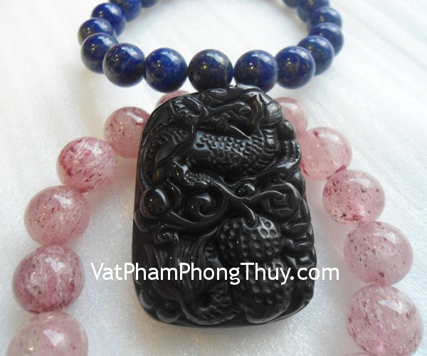 + Chất liệu và hoàn thiện: Rồng ôm củ lạc đá hắc ngà (thạch anh đen, onyx).