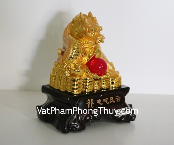 + Chất liệu và hoàn thiện: Tượng rồng màu vàng phun châu ngọc, ngồi trên đế gỗ đen, hàng bột đá mạ vàng cao cấp (tại Việt Nam).