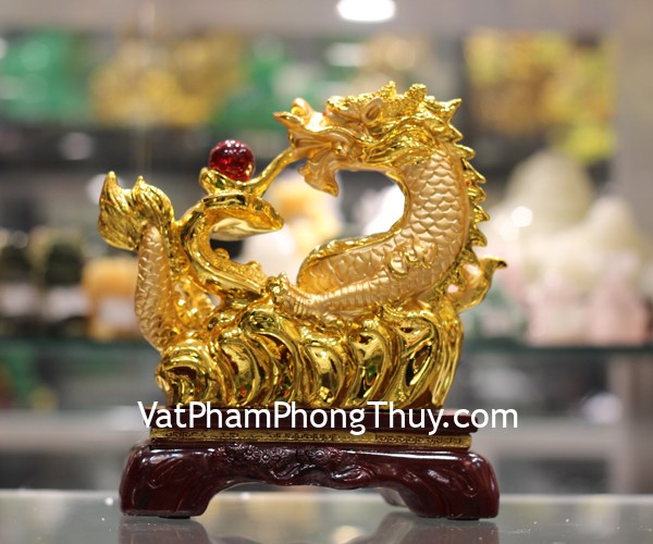 + Chất liệu và hoàn thiện: Tượng rồng vàng phun châu như ý, có đế gỗ, hàng bột đá cao cấp (tại Việt Nam).