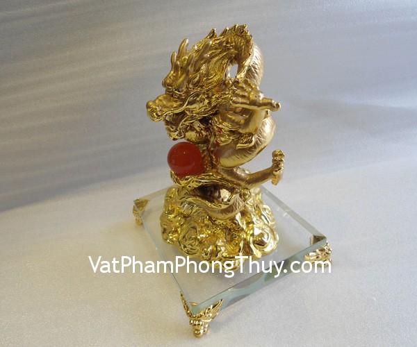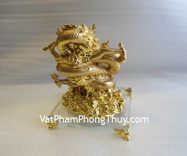 + Chất liệu và hoàn thiện: Rồng bột đá mạ vàng trên đế thuỷ tinh (tại Việt Nam).