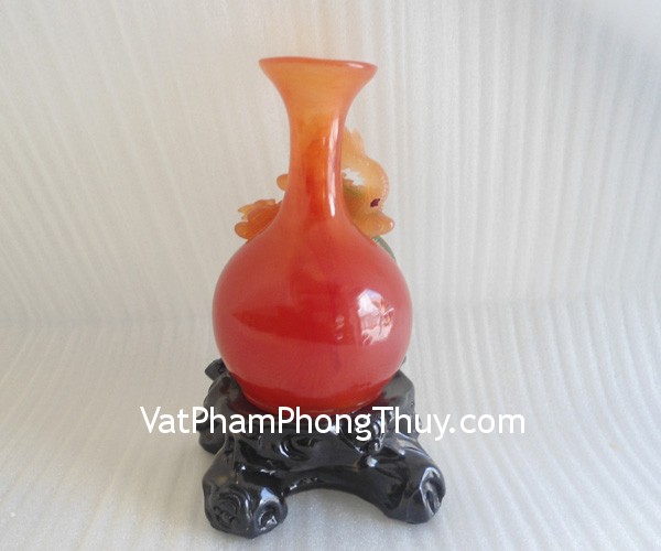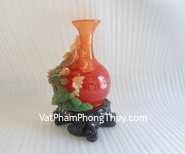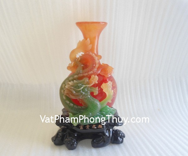 + Chất liệu và hoàn thiện: Rồng xanh cuộn bình đỏ bột đá màu, trên đế gỗ (tại Việt Nam).