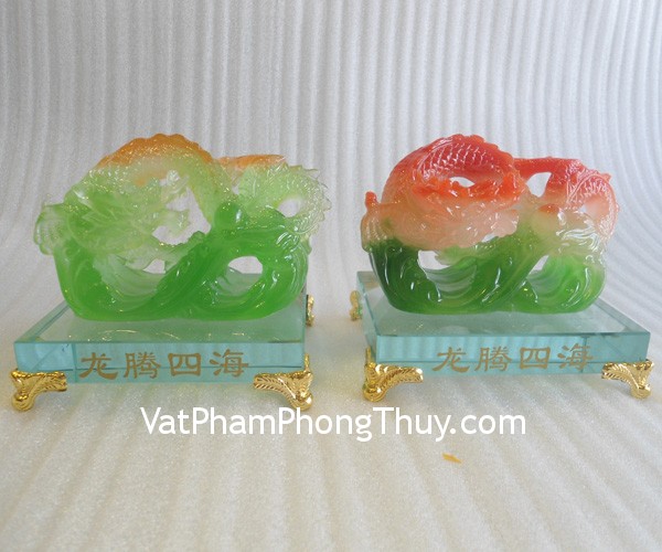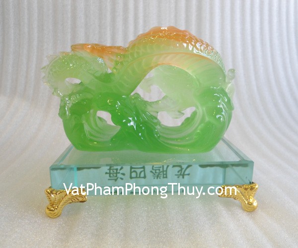 + Chất liệu và hoàn thiện: Rồng xanh bột đá màu, trên đế thủy tinh (tại Việt Nam).