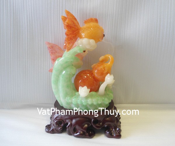 + Chất liệu và hoàn thiện: Tượng cá chép, hồ lô bột đá màu (tại Việt Nam).