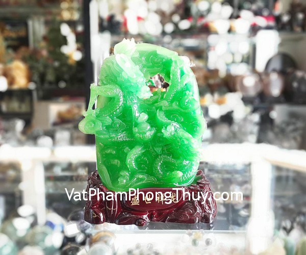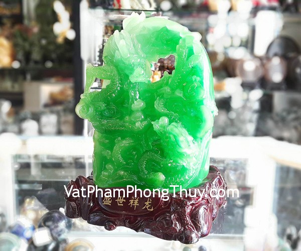 + Chất liệu và hoàn thiện : Tượng song long (rồng) bột đá màu xanh (tại Việt Nam).