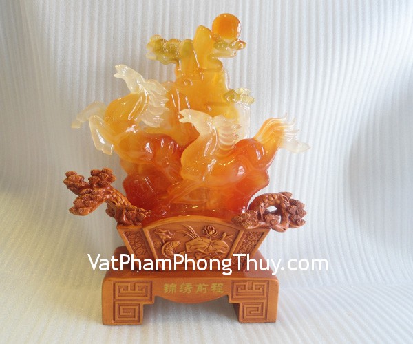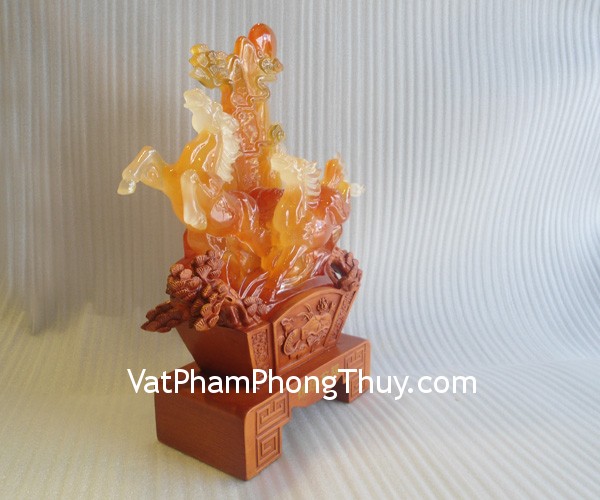 + Chất liệu và hoàn thiện: Song mã (ngựa) bột đá màu cam (tại Việt Nam).