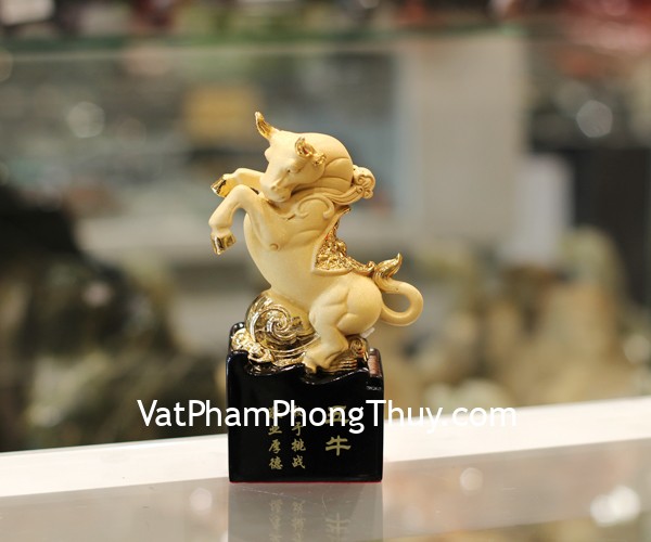 + Chất liệu và hoàn thiện: Tượng trâu (sửu) trên đế gỗ, bộ 12 con giáp, bằng bột đá sa kim cao cấp (tại Việt Nam).