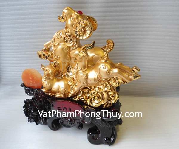 Chất liệu và hoàn thiện: Tam dương (ba con dê) khai nguyệt đỏ, bột đá mạ vàng (tại Việt Nam)