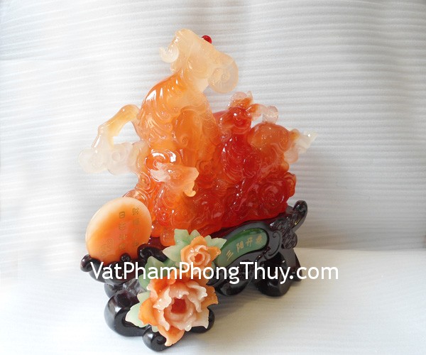 + Chất liệu và hoàn thiện: Tam dương (ba con dê) khai nguyệt đỏ, bột đá màu (tại Việt Nam)